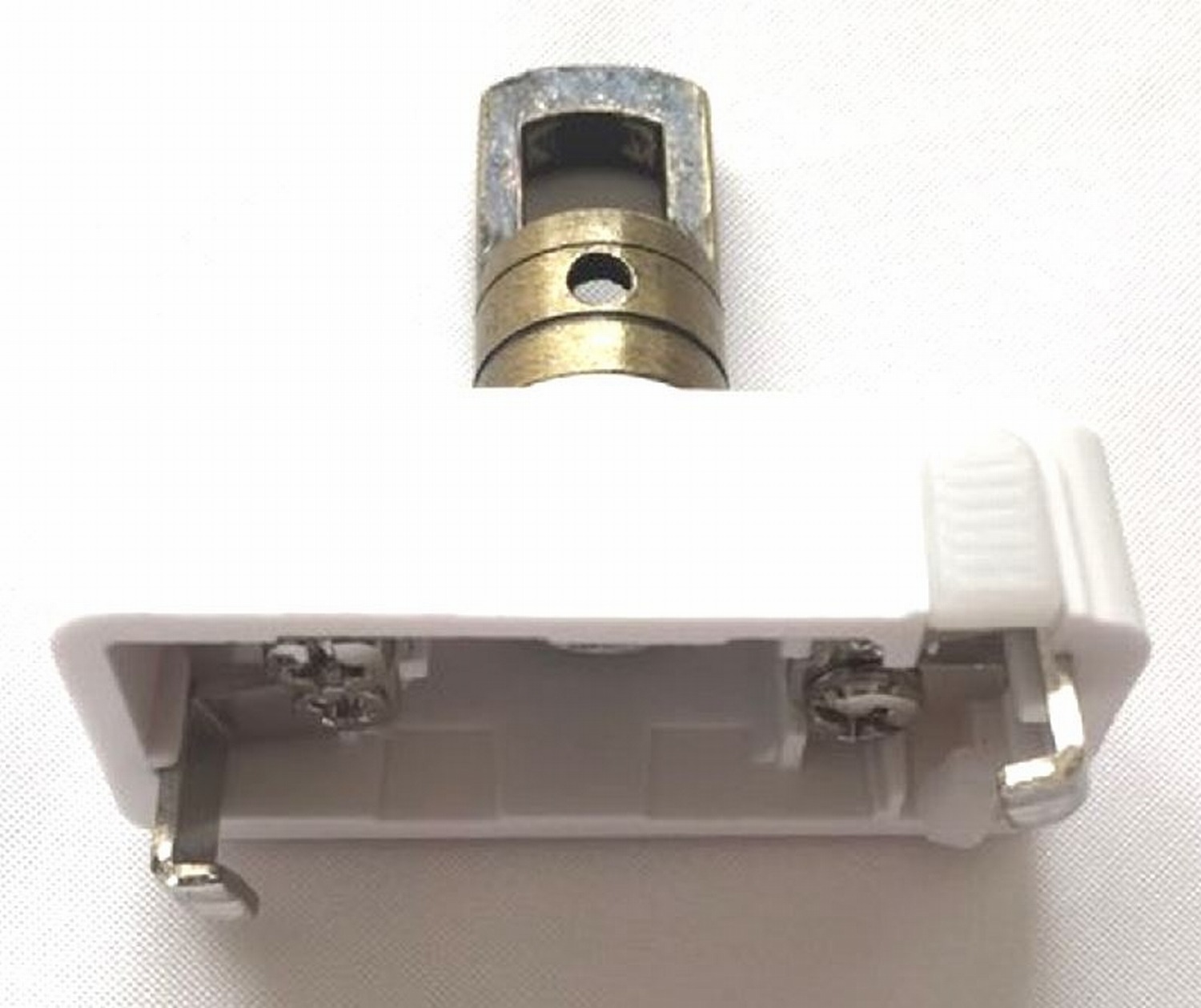 こちらもケーブルが通る様になっています。ここに電気コードを通します。フック側と反対側のプラスネジを緩めて接続します。
