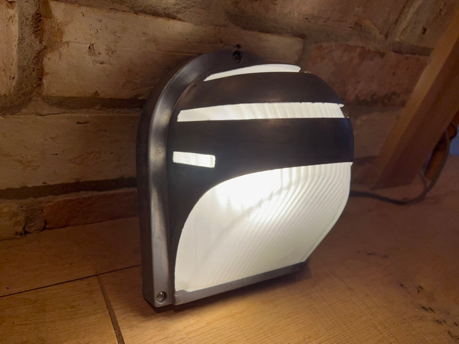 点灯すると、メタルガードとガラスカバーが光を分割し、壁面に立体的な陰影を生み出します。